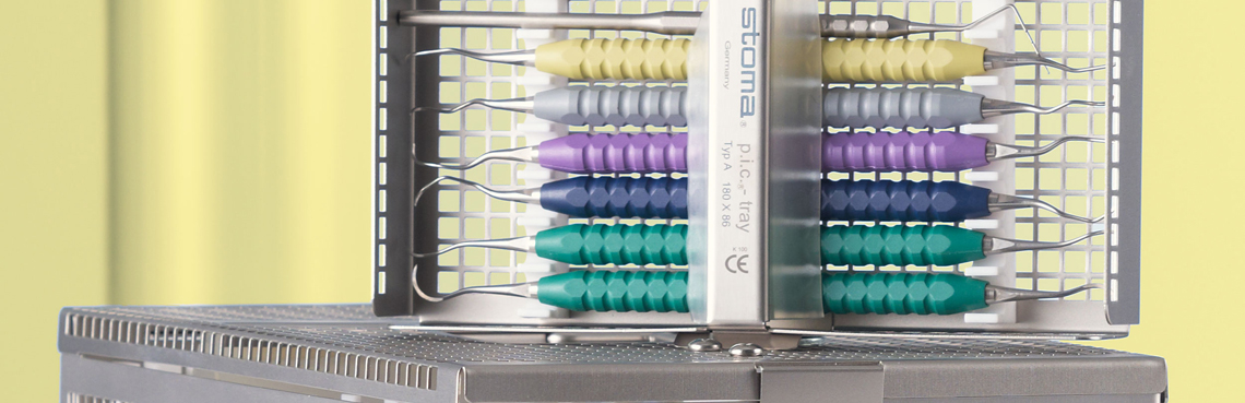 Thanks to the modular design of these trays and containers, products from all areas, such as diagnostics, conserving treatment, endodontics, periodontology, surgery, implantology and osteosynthesis can be put together for an efficient way of working.