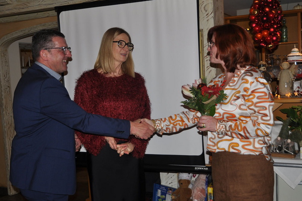 Un momento destacado de la noche fue el reconocimiento a los empleados de larga trayectoria: Elke Goedecke trabaja en el servicio de campo desde 2010 y cubre la región Centro-Oeste de Alemania. Xhevat Bujupi aporta 20 años de experiencia en la producción de instrumentos dentales. Albrecht Bertsche, que sigue trabajando a tiempo parcial a pesar de estar jubilado, celebra 50 años en la empresa. Cada homenajeado recibió un pequeño obsequio como muestra de agradecimiento. Karin Heß, que trabajó en diseño y desarrollo, se jubiló recientemente tras 15 años en la empresa. La celebración subrayó la importancia de la unión, la experiencia y el compromiso a largo plazo.