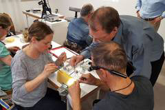 Der Schwerpunkt des Hands-on-Kurses lag auf der praktischen Tätigkeit aller Teilnehmer am Schweinekiefer. Dr. Petschelt erklärte Fälle aus der Praxis und gab anschließend Hilfestellung bei der korrekten Ausführung. Die Teilnehmer arbeiteten mit passenden Stoma-Instrumenten und Stoma-Nahtmaterial. Zusätzlich wurde der Nachmittagskurs von Industriepartner Dentsply Implants unterstützt.