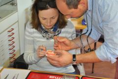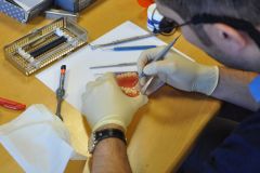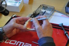 Die praktische Umsetzung hochästhetischer Versorgungskonzepte im Front- bzw. Seitenzahnbereich sowie der gesamten Arbeitssystematik am Phantommodell war eindeutig Schwerpunkt dieses stoma® Hands-on-Workshops. Nach Erläuterung der theoretischen Grundlagen zeigte Dr. Beck-Mußotter ausführlich die Versorgung von Front- wie auch Seitenzahnrekonstruktionen mit Hochleistungskompositen. Beide Behandlungen wurden übertragen in 3D mit MoraVision. Anschließend durfte die Kleingruppe unter Anleitung des Referenten Schritt für Schritt die entsprechenden Behandlungen am Phantommodell mit bereitgestellten Stoma®-Instrumenten und Materialien trainieren.