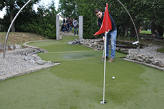 Momentan beschäftigt der klein-mittelständische und vollstufige Betrieb sieben Auszubildende mit dem Ziel den Fachkräftenachwuchs aus den eigenen Reihen zu sichern. Gleich zum Ende der ersten Arbeitswoche hatte Storz am Mark für alle beschäftigten Azubis einen Kennenlerntag organisiert. Nach einem gemeinsamen Frühstück machte sich die Gruppe auf den Weg nach Pfullendorf zu einer interessanten und spannenden Betriebsbesichtigung bei Sanitärproduktehersteller Geberit. Anschließend konnten alle ihre Geschicklichkeit und Zielsicherheit auf Deutschlands verrücktester Abenteuer-Golfanlage unter Beweis stellen.